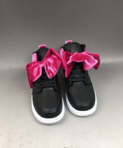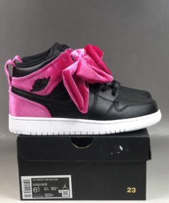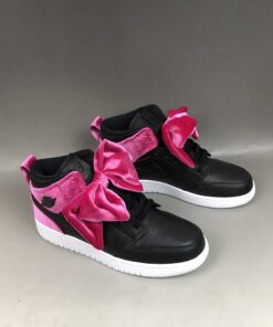 Step up your sneaker game with the Air Jordan 1 Mid Bow in Black/Noble Red. These stylish kicks feature a sleek black leather upper with pops of bold red accents for a standout look. The iconic Air Jordan silhouette is updated with a feminine bow detail on the heel, adding a touch of flair to your outfit. Whether you’re hitting the court or hitting the streets, these Air Jordans will keep you looking fresh and on-trend. Get your hands on a pair today!