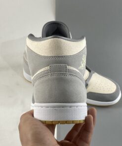 Step up your sneaker game with the Air Jordan 1 Mid in Coconut Milk/Particle Grey/White. This stylish and versatile shoe features a classic mid-top silhouette with a unique colorway that will make you stand out from the crowd. The premium materials and cushioned sole provide all-day comfort, while the iconic Air Jordan branding adds a touch of streetwear flair. Whether you’re hitting the court or the streets, these Air Jordans are sure to turn heads. Get your hands on a pair today!