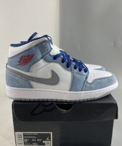 Step up your sneaker game with the Air Jordan 1 Mid in French Blue/Fire Red-White-Light Steel Grey. These stylish and versatile sneakers feature a classic Jordan silhouette with a modern colorway that will make a statement wherever you go. With premium materials and superior craftsmanship, these Air Jordans are not only fashionable but also comfortable and durable. Don’t miss out on the chance to add these iconic sneakers to your collection. Get your pair now!