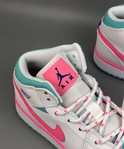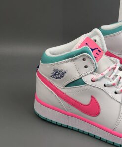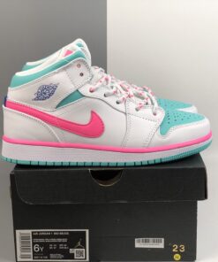 The Air Jordan 1 Mid GS in White/Digital Pink-Aurora Green-Soar is a stylish and vibrant sneaker for kids. Featuring a classic Air Jordan 1 silhouette with a fresh colorway, these shoes are perfect for adding a pop of color to any outfit. The high-quality construction and comfortable fit make them ideal for everyday wear. Upgrade your child’s sneaker game with the Air Jordan 1 Mid GS in White/Digital Pink-Aurora Green-Soar.