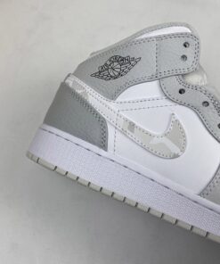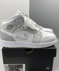 The Air Jordan 1 Mid GS White Grey Camo Swoosh is a stylish and trendy sneaker that combines classic design with a modern twist. Featuring a white and grey camo pattern on the swoosh logo, these sneakers are perfect for adding a pop of color to any outfit. With the iconic Air Jordan 1 silhouette and comfortable mid-top design, these shoes are perfect for everyday wear or hitting the court. Get your hands on a pair today and step up your sneaker game.