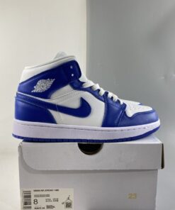 The Air Jordan 1 Mid ‘Kentucky’ White/Hyper Royal is a stylish and classic sneaker that pays homage to the University of Kentucky’s iconic blue and white colors. Featuring a clean white leather upper with hits of Hyper Royal blue on the Swoosh, collar, and outsole, these sneakers are perfect for adding a pop of color to any outfit. With the signature Air Jordan branding and comfortable cushioning, these shoes are a must-have for any sneakerhead or basketball fan. Get your hands on a pair today and step out in style.