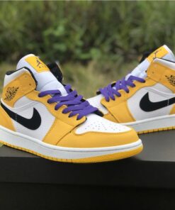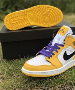 Step up your sneaker game with the Air Jordan 1 Mid ‘Lakers’ Sail Yellow. Featuring the iconic Jordan silhouette in a vibrant yellow and sail colorway, these sneakers are perfect for adding a pop of color to any outfit. With a comfortable mid-top design and premium materials, these sneakers are as stylish as they are functional. Don’t miss out on this limited edition release – grab your pair today while they’re on sale!