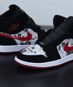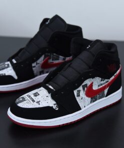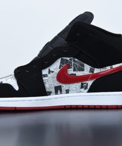 Step up your sneaker game with the Air Jordan 1 Mid ‘Newspaper’ in Black/Gym Red-White. These stylish kicks feature a unique newspaper print design on the upper, giving them a one-of-a-kind look. The classic Air Jordan 1 silhouette is complemented by a bold colorway of black, red, and white, making them a versatile addition to any sneaker collection. Whether you’re hitting the court or hitting the streets, these Air Jordans are sure to turn heads. Get your hands on a pair today and step out in style.