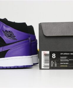 Step up your sneaker game with the Air Jordan 1 Mid Purple/Black. These stylish and iconic sneakers feature a sleek purple and black colorway that will make a statement wherever you go. With the signature Air Jordan branding and comfortable cushioning, these shoes are perfect for both on and off the court. Don’t miss out on adding these must-have kicks to your collection. Get your pair today!