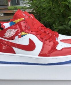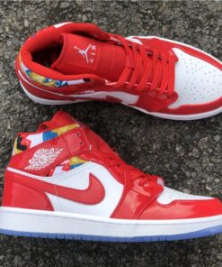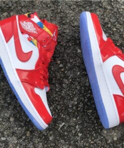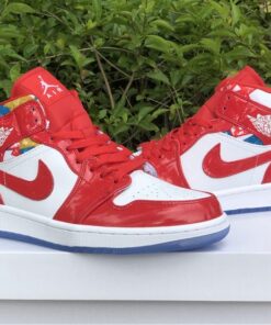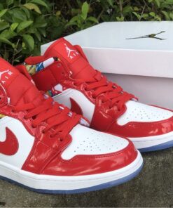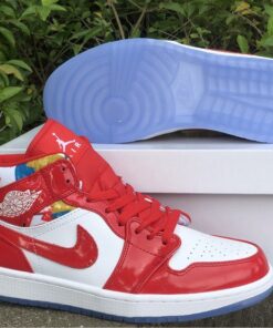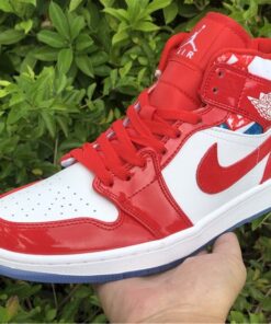 Step up your sneaker game with the Air Jordan 1 Mid Red Patent and Geometric Print. These stylish kicks feature a bold red patent leather upper with eye-catching geometric print accents. The iconic Air Jordan 1 silhouette offers a comfortable fit and classic style that will turn heads wherever you go. Don’t miss out on adding these unique sneakers to your collection. Get your pair today!