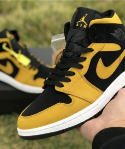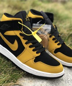 The Air Jordan 1 Mid “Reverse New Love” combines classic style with a bold colorway. Featuring a black and university gold color scheme, these sneakers are sure to turn heads. With a comfortable fit and iconic Air Jordan branding, these shoes are perfect for both on and off the court. Don’t miss out on adding these stylish kicks to your collection.