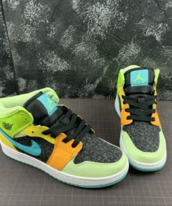 The Air Jordan 1 Mid SE GS in Black/Aurora Green is a stylish and eye-catching sneaker for kids. Featuring a sleek black upper with pops of vibrant green, these shoes are perfect for adding a bold touch to any outfit. With the iconic Air Jordan branding and comfortable cushioning, these sneakers are both fashionable and functional. Get your hands on a pair today and step up your sneaker game.