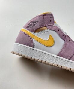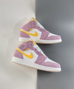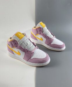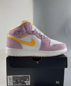 The Air Jordan 1 Mid SE GS in Light Arctic Pink/University Gold-White is a stylish and eye-catching sneaker for kids. Featuring a unique colorway with pops of pink and gold, these sneakers are sure to stand out in any crowd. The iconic Air Jordan 1 silhouette offers comfort and support for all-day wear, making them perfect for both casual and athletic activities. Upgrade your child’s sneaker game with the Air Jordan 1 Mid SE GS in Light Arctic Pink/University Gold-White.