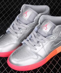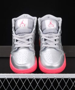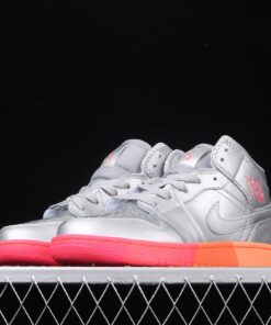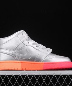 The Air Jordan 1 Mid SE GS in Metallic Silver/Racer Pink-Wolf Grey-Hot Punch is a stylish and eye-catching sneaker for kids. Featuring a metallic silver and pink colorway with grey and hot punch accents, these shoes are sure to stand out. The Air Jordan 1 Mid SE GS offers a comfortable fit and classic Jordan style, making them a must-have for any young sneakerhead.