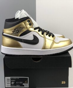 Step up your sneaker game with the Air Jordan 1 Mid SE “Metallic Gold.” This iconic silhouette features a sleek metallic gold colorway that is sure to turn heads. With premium materials and the signature Air Jordan cushioning, these sneakers offer both style and comfort. Whether you’re hitting the court or the streets, these Air Jordans are a must-have addition to your collection. Grab a pair now and elevate your look with a touch of gold.