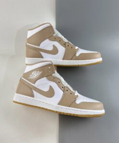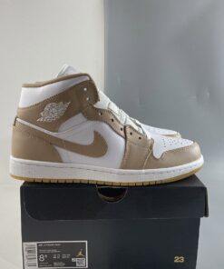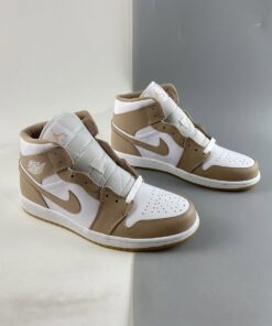 Step up your sneaker game with the Air Jordan 1 Mid “Tan Gum” in a stylish Hemp/Gum Yellow/White colorway. These iconic sneakers feature a classic mid-top silhouette with premium materials and cushioned support for all-day comfort. Perfect for adding a touch of streetwear flair to any outfit, these Air Jordans are a must-have for any sneakerhead. Get your hands on a pair today and elevate your style game.