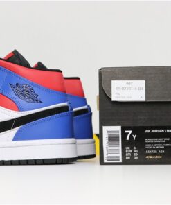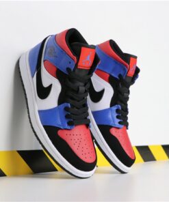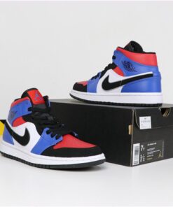 The Air Jordan 1 Mid “Top 3” combines elements from three iconic colorways of the Jordan 1 silhouette. Featuring a mix of red, blue, and white leather panels, this sneaker offers a unique and eye-catching look. With the classic Air Jordan branding and comfortable mid-top design, these shoes are a must-have for any sneakerhead. Don’t miss out on adding this stylish and versatile pair to your collection.