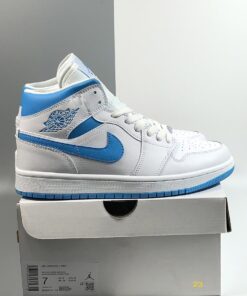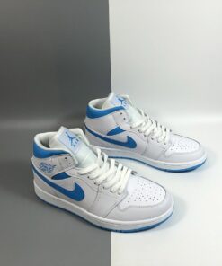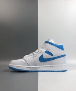 The Air Jordan 1 Mid ‘UNC’ White/Light Blue is a classic and stylish sneaker that pays homage to the University of North Carolina’s iconic colors. Featuring a clean white leather upper with light blue accents, this shoe offers a timeless look that is perfect for both casual and athletic wear. With the signature Air Jordan branding and comfortable cushioning, these sneakers are a must-have for any sneakerhead or basketball fan. Get your hands on a pair today and step out in style.
