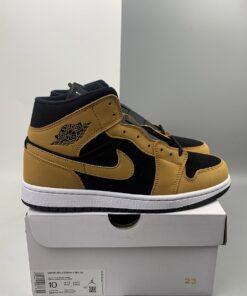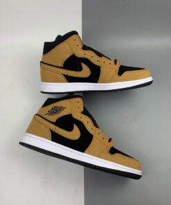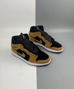 The Air Jordan 1 Mid ‘Wheat’ Desert Ochre/Black is a stylish and versatile sneaker that combines classic design with modern flair. Featuring a wheat-colored upper with black accents, these sneakers are perfect for everyday wear or a night out on the town. The iconic Air Jordan logo on the side adds a touch of sporty appeal, while the comfortable midsole provides all-day support. Add these trendy kicks to your collection today and step out in style.