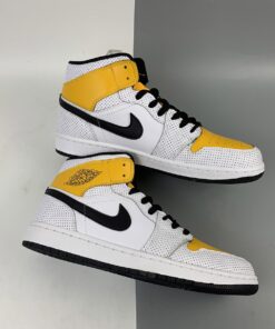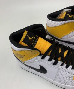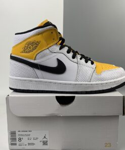 Step up your sneaker game with the Air Jordan 1 Mid in White/Black-University Gold. These iconic sneakers feature a classic colorway with a pop of gold for a stylish twist. The high-top design and Air cushioning provide ultimate comfort and support for all-day wear. Whether you’re hitting the court or the streets, these Air Jordans will have you looking fresh and feeling confident. Grab a pair today and elevate your sneaker collection.