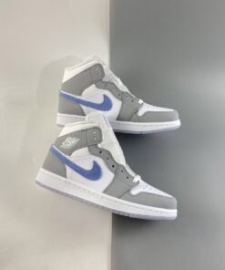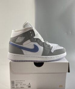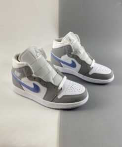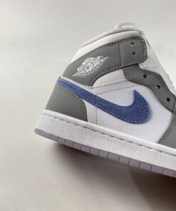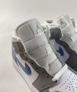 Step up your sneaker game with the Air Jordan 1 Mid in White, Grey, and Blue. These iconic sneakers feature a classic colorway that will elevate any outfit. With a comfortable fit and durable construction, these shoes are perfect for everyday wear. Don’t miss out on adding these stylish kicks to your collection. Get your pair now!