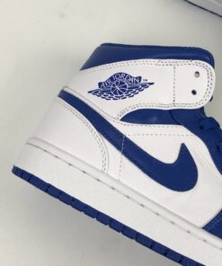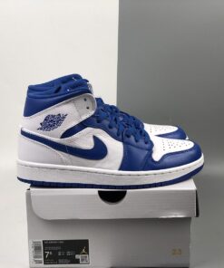 The Air Jordan 1 Mid White/Hyper Royal sneakers are a stylish and versatile addition to any sneaker collection. Featuring a clean white leather upper with pops of vibrant Hyper Royal blue on the Swoosh, collar, and outsole, these sneakers are sure to turn heads. The iconic Air Jordan 1 silhouette offers comfort and support for all-day wear. Don’t miss out on adding these classic kicks to your wardrobe.