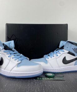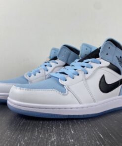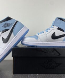 Step up your sneaker game with the Air Jordan 1 Mid White/Ice Blue-Black. This iconic shoe features a classic white and black colorway with a pop of ice blue for a fresh and stylish look. The high-top design provides ankle support and the Air cushioning ensures all-day comfort. Whether you’re hitting the court or the streets, these Air Jordans will have you looking and feeling your best. Get your hands on a pair today and elevate your sneaker collection.
