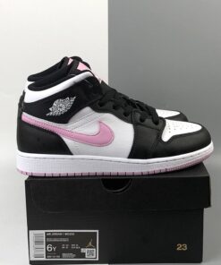Step up your sneaker game with the Air Jordan 1 Mid in White Light Arctic Pink. These stylish kicks feature a classic white leather upper with pops of soft pink for a feminine touch. The iconic Air Jordan silhouette is perfect for everyday wear, whether you’re hitting the streets or the court. Don’t miss out on adding these must-have sneakers to your collection. Get your pair now!