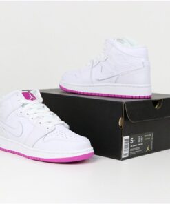 The Air Jordan 1 Mid White Pink is a stylish and versatile sneaker that combines classic design with a pop of color. Featuring a white leather upper with pink accents, this shoe is perfect for adding a feminine touch to any outfit. The iconic Air Jordan logo on the side adds a touch of sporty flair, while the comfortable midsole provides all-day support. Whether you’re hitting the court or hitting the town, the Air Jordan 1 Mid White Pink is sure to turn heads.
