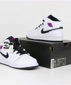 The Air Jordan 1 Mid White Purple Black is a stylish and versatile sneaker that combines classic design with modern flair. Featuring a sleek white leather upper with purple and black accents, these shoes are perfect for adding a pop of color to any outfit. With the iconic Air Jordan logo on the side and a comfortable mid-top silhouette, these sneakers are sure to turn heads wherever you go. Don’t miss out on the chance to add these must-have kicks to your collection.