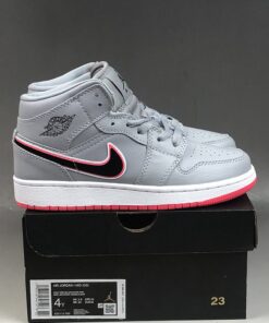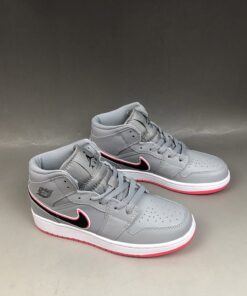 Step up your sneaker game with the Air Jordan 1 Mid in Wolf Grey, Racer Pink, and Black. These stylish and versatile sneakers feature a classic Jordan silhouette with a modern twist. The combination of colors adds a pop of pink to your outfit, while the high-quality materials ensure durability and comfort. Whether you’re hitting the court or the streets, these Air Jordans will keep you looking fresh and feeling confident. Get your pair today and stand out from the crowd.