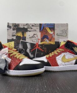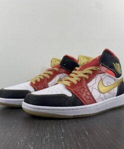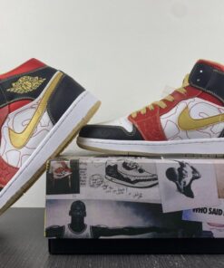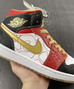The Air Jordan 1 Mid “XQ” in White/Gold Dust/Sport Red/Black is a stylish and eye-catching sneaker that combines classic design with modern flair. Featuring a mix of white, gold, red, and black colors, this shoe is sure to turn heads wherever you go. With the iconic Air Jordan branding and comfortable mid-top design, these sneakers are perfect for both casual wear and athletic activities. Don’t miss out on adding this unique and versatile shoe to your collection.