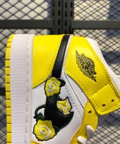 Step up your sneaker game with the Air Jordan 1 Mid “Yellow Flower.” These stylish kicks feature a vibrant yellow colorway with floral accents, giving them a unique and eye-catching look. The iconic Air Jordan 1 silhouette provides comfort and support for all-day wear. Don’t miss out on adding these limited edition sneakers to your collection. Get your pair now!