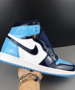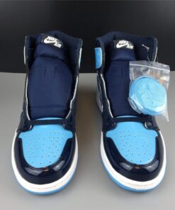 The Air Jordan 1 Retro High OG “UNC Patent” in Obsidian/Blue Chill-White is a must-have for any sneakerhead. Featuring a sleek patent leather upper in a striking blue colorway, these shoes are a stylish and versatile addition to any wardrobe. With the iconic Air Jordan 1 silhouette and high-quality construction, these sneakers are sure to turn heads wherever you go. Don’t miss out on your chance to own a pair of these limited edition kicks.