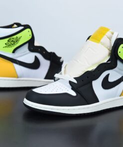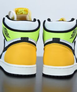 The Air Jordan 1 Retro High OG ‘Volt Gold’ combines classic style with a bold colorway. Featuring a white leather upper with hits of volt, university gold, and black, these sneakers are sure to turn heads. The iconic Air Jordan 1 silhouette is updated with vibrant accents for a fresh take on a timeless design. Perfect for sneakerheads and basketball fans alike, these kicks are a must-have for any collection.