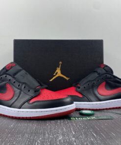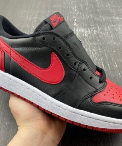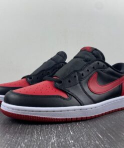 The Air Jordan 1 Retro Low Bred Black/Varsity Red–Sail is a classic sneaker that combines style and comfort. Featuring a sleek black and red colorway with a sail white sole, these shoes are perfect for any casual or athletic outfit. The iconic Air Jordan logo on the side adds a touch of retro flair. Don’t miss out on the chance to own a pair of these timeless kicks.