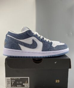 Step up your sneaker game with the Air Jordan 1 Retro Low Canvas White Denim. These stylish kicks feature a classic white canvas upper with denim accents for a unique and trendy look. The iconic Air Jordan 1 silhouette provides all-day comfort and support, making them perfect for everyday wear. Don’t miss out on adding these must-have sneakers to your collection. Get your pair now!