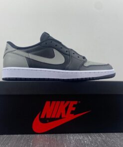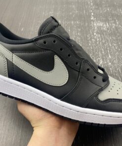 The Air Jordan 1 Retro Low Shadow combines classic style with modern comfort. Featuring a sleek black and medium grey colorway with a sail sole, these sneakers are perfect for everyday wear. The iconic Air Jordan logo on the side adds a touch of retro flair. Step up your sneaker game with the Air Jordan 1 Retro Low Shadow.