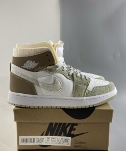 Step up your sneaker game with the Air Jordan 1 Zoom CMFT in White/Grey Heather-Olive Aura-Khaki. These stylish and comfortable sneakers feature a sleek design with a mix of neutral colors that will easily complement any outfit. The Zoom Air cushioning provides all-day comfort and support, making them perfect for everyday wear. Don’t miss out on adding these must-have kicks to your collection. Get your pair now!