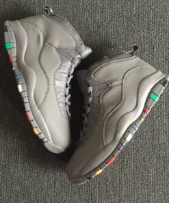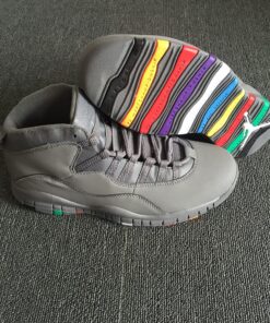 Dressed in a Cool Grey and White color scheme, much like the other Air Jordan “Cool Grey” releases. This Air Jordan 10 features a Cool Grey upper highlighted by its colorful outsole. Each color represents one of the opponents MJ and the Bulls defeated on their way to six NBA Championships.
