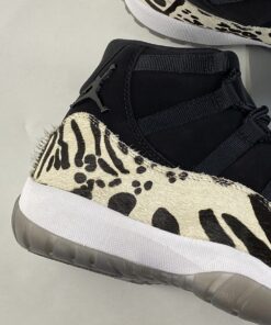 The upper half, as revealed by way of the mock-up, is left rather muted. Black dyes dress both the tongue and the side profile, both bearing a premium, suede texture. Jumpman emblems sit right atop, blacked out all the same though with a more metallic sheen. Red, then, pokes out from the back, branding with the usual “23.” Below, the mudguard flaunts the aforementioned prints: leopard covers the heel, tiger stripes dress the toe, and cheetah spots rest right in between — all, tonally, matching in their choice of tan fur and dark neutral markings.