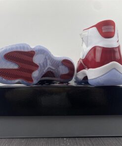 Reminiscent of the “Cherry” Air Jordan 11 Low, this offering of the Air Jordan 11 features a White mesh base with leather heels and Varsity Red accents on the branded areas, lining as well as its shiny high-cut patent leather overlay. A White midsole atop a translucent outsole completes the design.