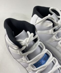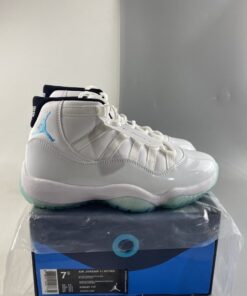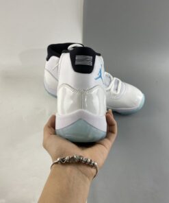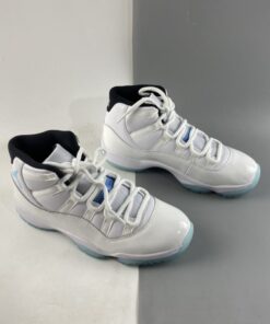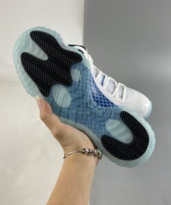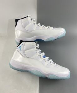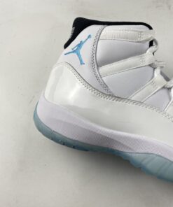 Just like the OG version, this 2014 retro model features a classic white full-grain upper. It also includes white patent overlays with black inner lining. There is also light blue accents on the tongue tab and Jumpman embroidery. The shoe is finished off with a blue tinted icy translucent out-sole unit.