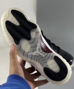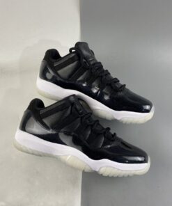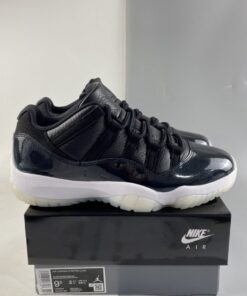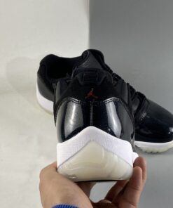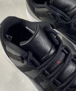 The shoes are a nod to the Chicago Bulls‘ 1995-1996 NBA season when Michael Jordan, Scottie Pippen, Dennis Rodman and company achieved a 72 wins and 10 losses in the regular season — the second greatest record in the league’s history to-date. It also harks back to 2015 when the original Air Jordan 11 model released with this same exact theme. Much like the rendition from seven years ago, the uppers arrive engineered with a solid black tumbled leather material that makes up the side walls and the tongues. “Gym Red” accents appear on the Jumpman insignias atop the heels and banners on the middle of the throat, while the “23” hits on the rear blend in with its stealthy backdrop. Mudguards discards their customary patent leather material and instead brings in a premium leather that is coated with a slightly shimmery gloss.