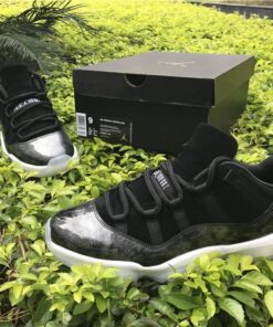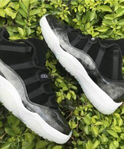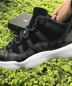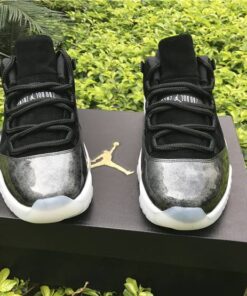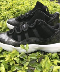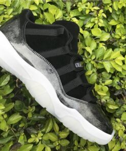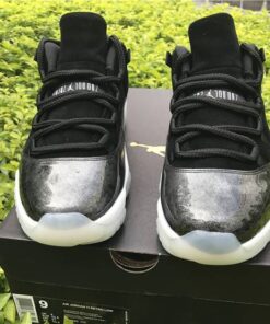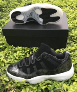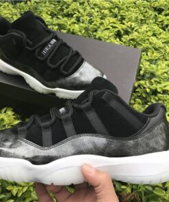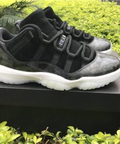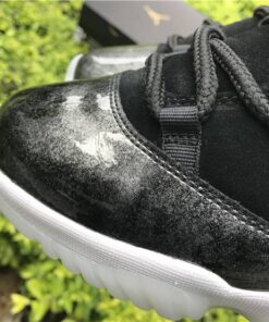 Dressed in a Birmingham Barons-style having a Black, Metallic Silver and White color scheme. This Air Jordan 11 Low features a Black suede upper with matching Black leather heels. An iridescent patent leather overlays the mudguard, while sitting atop a White midsole. Metallic Silver branding and a milky translucent outsole completes the look.