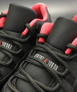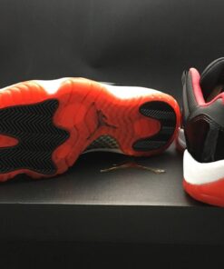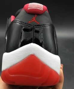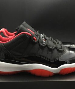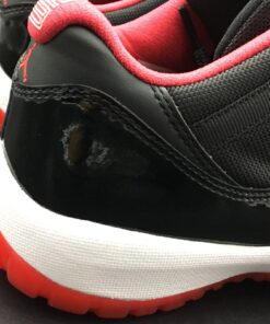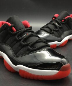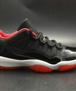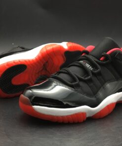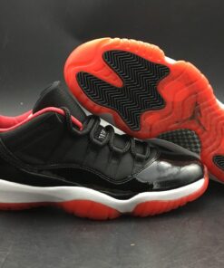 The Bred Air Jordan 11 Low is pretty much spot on with the mids. Color blocking is the same, patent leather and mesh uppers still runs through the shoes. The only difference is the Jumpman logo that is placed by the collar moves to the heel.