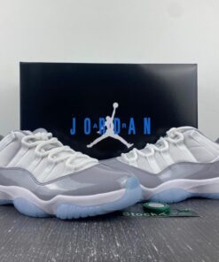 Dressed in a White, University Blue, and Cement Grey color scheme. No leaked photos have surfaced, but this low-top Air Jordan 11 is expected to feature a White mesh upper with elephant print mudguards. University Blue Jumpman branding atop a White midsole and translucent outsole completes the design.