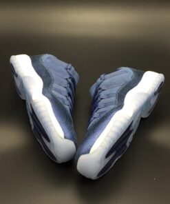 Dressed in a Blue Moon, Sunset Blue, Binary Blue and White color scheme. Unlike the other upcoming Air Jordan 11 Low releases, this “Blue Moon” colorway ditches the usual mesh and patent leather with a new constructed build. Featuring a suede upper with a cracked leather mudguard. A White midsole and icy translucent outsole completes the design.