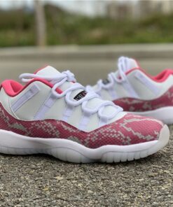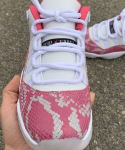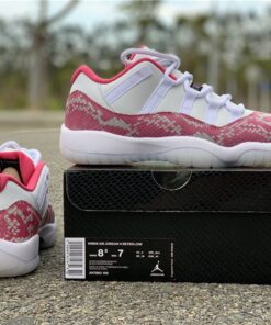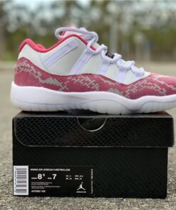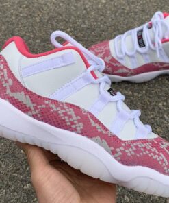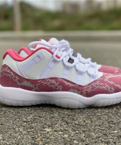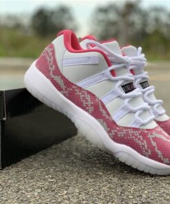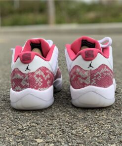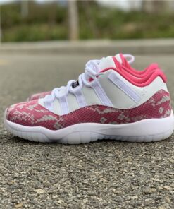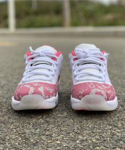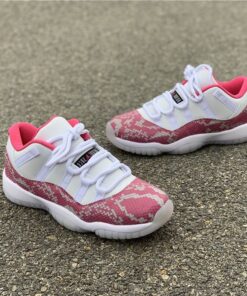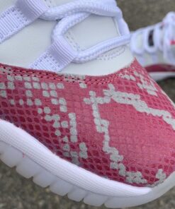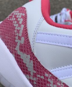 This variation Air Jordan 11 comes with White leather across the upper while Pink Snakeskin lands on the mudguard and wraps the entire shoe. In addition we have a lighter shade of Pink on the Jumpman branding and across the liner and areas of the outsole. Finishing the look we have Black on the tongue and a milky translucent outsole.