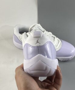 Dressed in a White and Pure Violet color scheme. This Air Jordan 11 Low features a White mesh upper and tongue paired with Pure Violet patent leather overlays and sockliner. A White midsole atop an icy translucent outsole completes the design.