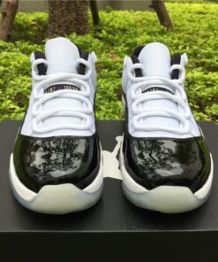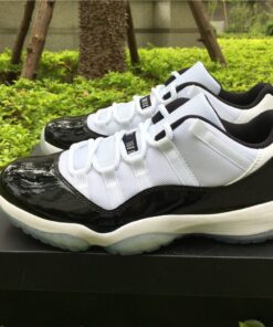 The Air Jordan 11 is the most iconic silhouette designed by Jordan Brand. Years ago they decided to release a low-top version and add Snakeskin overlays for a unique style. this version sports a classic Black mesh upper, accompanied by a Green snake skin overlay in place of the traditional patent leather. A white midsole is placed between the upper and translucent blue outsole. Volt accents can be seen along the outsole, as well as Jumpman logos on the rear ankle and tongue.