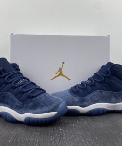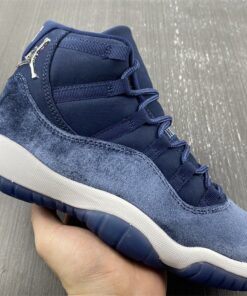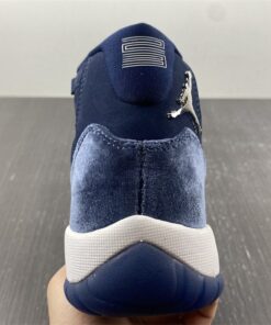 Dressed in a Midnight Navy, Metallic Silver, and White color scheme. This offering of the Air Jordan 11 will resemble the Velvet “Night Maroon” release from 2016. It features a Midnight Navy base with nubuck replacing the traditional mesh build as well as velvet used instead of patent leather. A White midsole atop a Navy semi-translucent outsole completes the design.