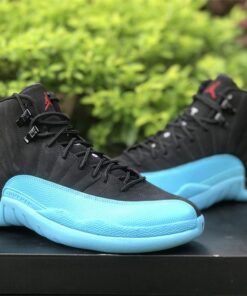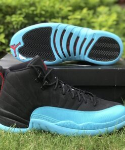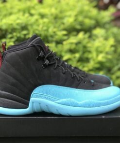 Dressed in a Black, Gym Red, and Gamma Blue color scheme. This offering of the Air Jordan 12 features a Black nubuck upper paired with Gym Red heel tabs and Jumpman logos. Gamma Blue highlights the shoe on the overlays and rubber sole.