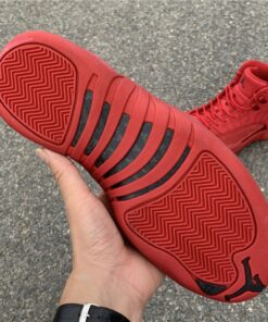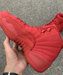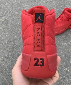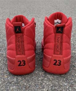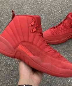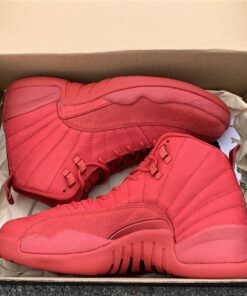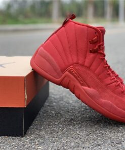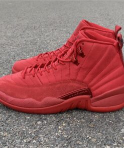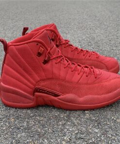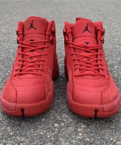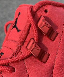 Dressed in the classic Chicago Bulls color scheme. This Air Jordan 12 features a full Gym Red leather upper atop a matching Red rubber sole. Black detailing throughout completes the Bulls theme.